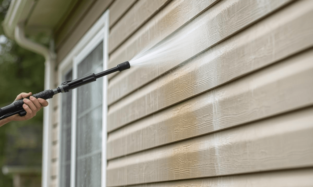 Gentle, lower pressure wash that removes organic stains, algae, mildew, and dirt.